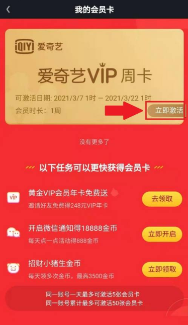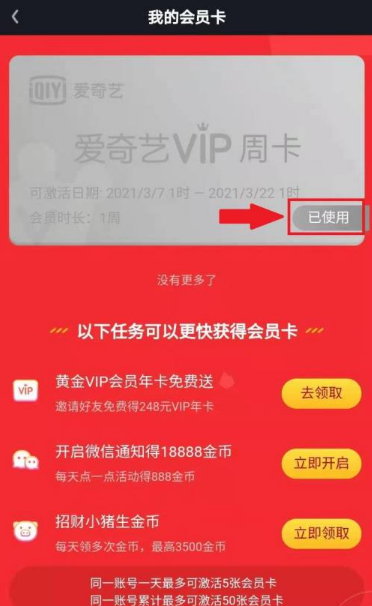 最后:以上就是心愿游戏的小编为你带来的爱奇艺随刻怎么激活会员卡,,爱奇艺随刻激活会员卡方法,希望帮到小伙伴们,更多相关的文章请关注心愿游戏。