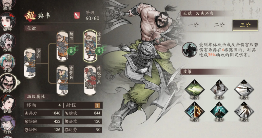 当然,若玩家将韩遂的基础等阶提升到最高级时,也就并不会携带有反击效果增益,仅保留基础增益的情况下,韩遂也可以携带给典韦这个角色。