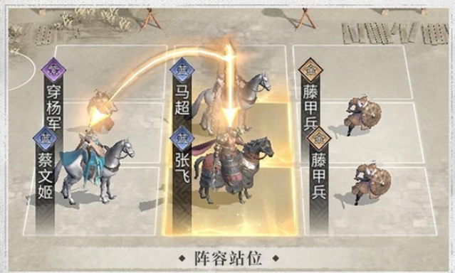 马超作为输出能力突出的武将,想要发挥他的全部实力,阵容搭配得围绕他的核心机制来做文章,基础阵容不用纠结太多稀有武将,凑齐核心组合就能用,主C肯定是马超,负责扛下主要的输出任务,靠着天赋锁定对面防御弱的目标,再用追击技能一套带走,辅助位选蔡文姬就很合适,作为游戏初期就能拿到的传奇武将,她不仅能持续给队伍回血,自带的余音效果还能提高全队追击技能的触发概率,刚好跟马超的追击格机制配上,新手前期用她准没错,前排就放一个盾兵类武将,只要能顶住敌方的第一波伤害,给中后排创造输出空间就行。