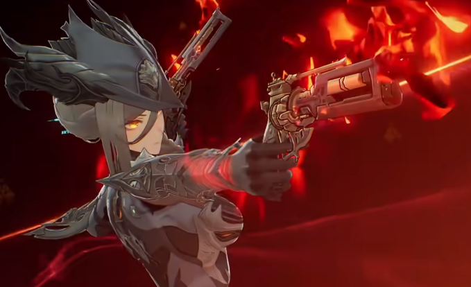 除了这几项技能之外,在战斗的时候还可以使用火药酬宾,这是一个比较独特的技能设定,建议玩家在有其他队友的时候再去触发,因为角色一旦触发之后就会在原地保持不动,这时候就会有很大的几率受到对方的攻击,在有其他成员的帮助下,触发这一项技能之外就可以切换成双枪,能给几乎战场上所有的敌人都带来伤害。