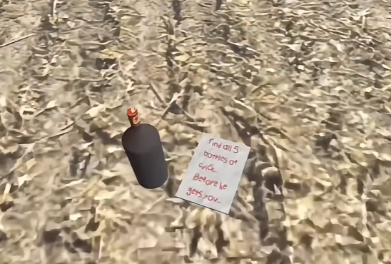 若成功从密室脱身,接下来便会进入被厚重雾气覆盖的主农场区域,这里则存在另一种常见的死亡结局——迷雾农场撞击结局。由于视野严重受限,玩家必须在昏暗环境中搜寻推动剧情发展的关键道具,同时警惕随时可能出现的威胁。约翰会驾驶一辆破旧拖拉机在场地内随机巡逻,一旦发现玩家踪迹,便会加速冲撞。倘若在探索过程中疏于观察周围动静,或未能及时躲藏至柴垛、谷仓等掩体后方,角色一旦被拖拉机击中即刻死亡,挑战宣告失败。