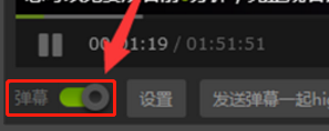 我们点击播放界面,打开播放界面的所以设置,在播放键按钮旁边有一个绿色的按钮,旁边写在弹幕两个字,这就是控制弹幕的开关。
