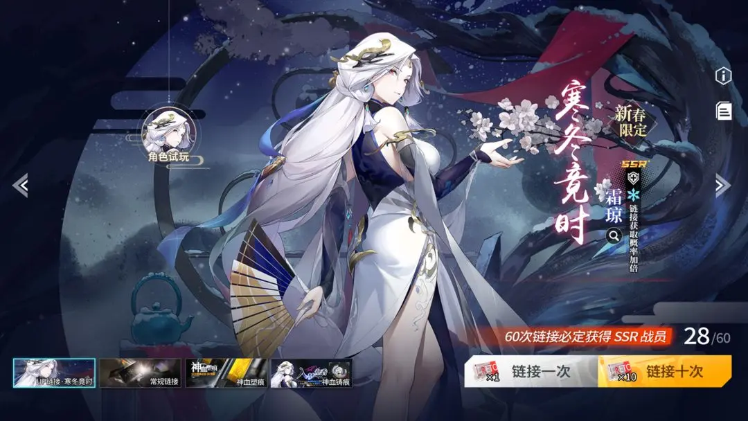 2.「寒冬竞时」链接卡池开启!UP 战员「新春限定·霜琼」链接概率提升,累计180 次链接必出「新春限定·霜琼」。
