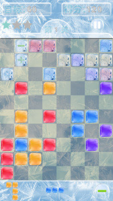 3、《消除冰块》《消除冰块》在经典合并类玩法基础上做出大胆革新,借鉴俄罗斯方块灵感但反向操作——冰块不会从上方落下,而是以各种形状出现在屏幕底部。玩家需通过向上拖动的方式调整位置,合理布局并完成横向满行消除。这种逆向思维的设计带来了全新的操作逻辑与解谜体验。