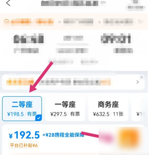 打开携程app,找到需要购买的车次