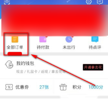 2、进入到个人界面后,浏览界面信息找到全部订单图标,点击全部订单按钮,进入到订单列表。