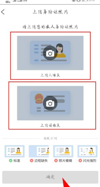最后将身份证正反面上传,点击确定即可完成身份证认证