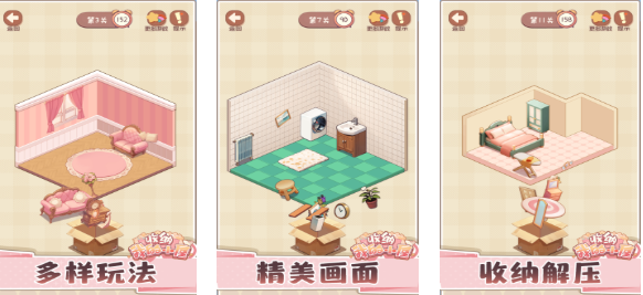 目前以冰箱为核心场景的收纳游戏相对较少,仅发现上述两款主题明确的作品。接下来再补充三款同样具备高休闲度与强解压效果的收纳类手游。
