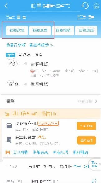 第四步:进入订单后,根据需求选择“我要改签/我要退票”,如图所示