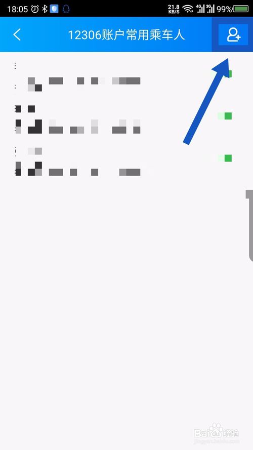 4.在打开的乘车人界面,点击右上角的加号。如图所示