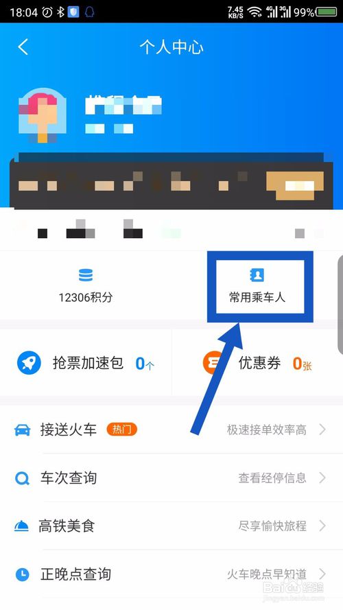 1.常用乘车人可以添加,每次购票都可以选择,在首页点击火车票卡片。如图
