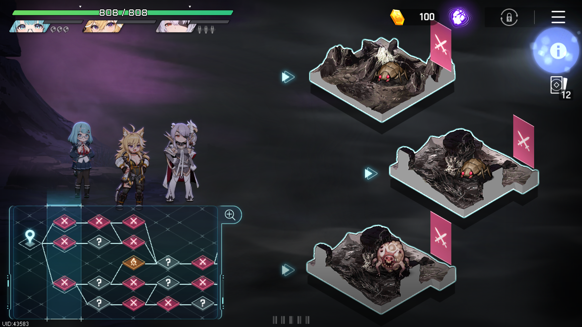 在卡厄斯关卡中,推进层数越深,最终结算奖励越丰厚。因此常规配队推荐采用“1治疗+1护盾+1输出”的组合结构,以保障在双图长线作战中的续航能力,减少战损。但在实际操作中,由于需要为特定角色刷取存档数据,生存位常被功能性角色替代,导致容错率下降。探索过程中应优先选择精英战斗路线,并积极触发篝火事件恢复状态。值得注意的是,核心区域的小怪强度普遍高于最终BOSS,盲目强攻容易导致失败,合理避战、保持队伍健康状态才是最优解。