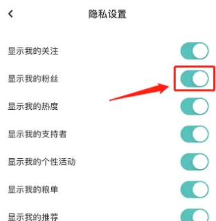 切换到隐私设置界面,选择下方【显示我的粉丝】右侧的开关。