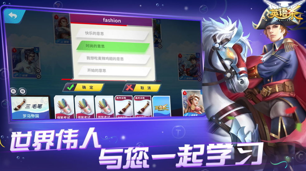 8、《英语杀》这是一款融合卡牌策略与英语学习元素的竞技类游戏。卡牌内容并非英雄人物,而是各类实用英语单词。战斗过程中,玩家需根据单词特性制定出战组合,不同词汇之间存在相克关系,合理搭配阵容才能战胜对手。闯关模式层层递进,既锻炼词汇记忆能力,也对反应速度和观察力提出较高要求,是一款兼具娱乐性与教育性的创新作品。9、《单词生产线》