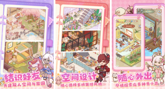本作主打高自由度的家居装修系统,复式结构、竹林庭院等多种户型风格均可个性化改造。玩家可将私人庄园幻化为梦幻魔法空间,上百款家具随心挑选,包括发光落地灯、复古布艺沙发等独特装饰。特别推出双人共建模式,邀请好友一同设计共享空间资源。整体画面温暖柔和,角色造型别具一格,营造出极具代入感的生活氛围。