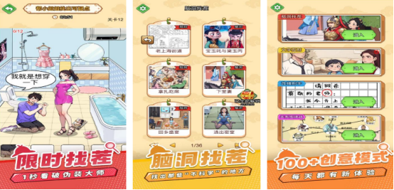 想要提升细节观察能力?这款游戏提供了上千个趣味关卡,且内容持续更新。每个场景都构建得生动有趣,隐藏着大量不符合常理的异常元素。扮演一名侦探,在限定时间内找出图中的不协调之处,挑战包括“老上海街道”、“拿扎吃席”等主题场景,兼具幽默感与思维挑战性。