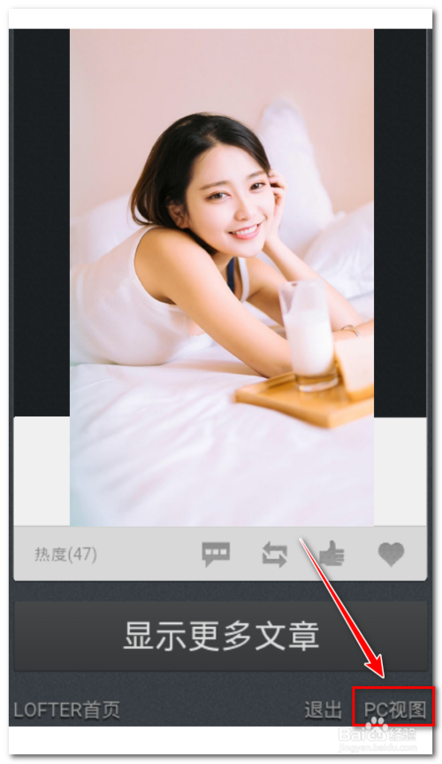 在主页的*下面的右下角有个提示用PC视图。点击一下PC视图。