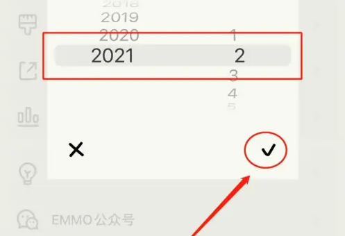 在弹出的“请选择导出月份”界面框中,选择要导出的年月日,点击下方的“√”按钮。