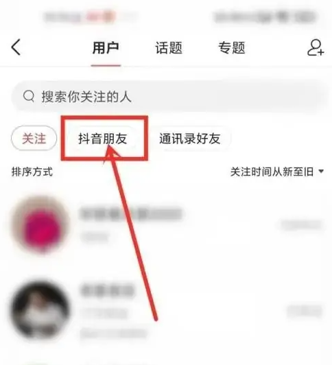 最后进入关注界面,点击“抖音朋友”,即可查看抖音好友。