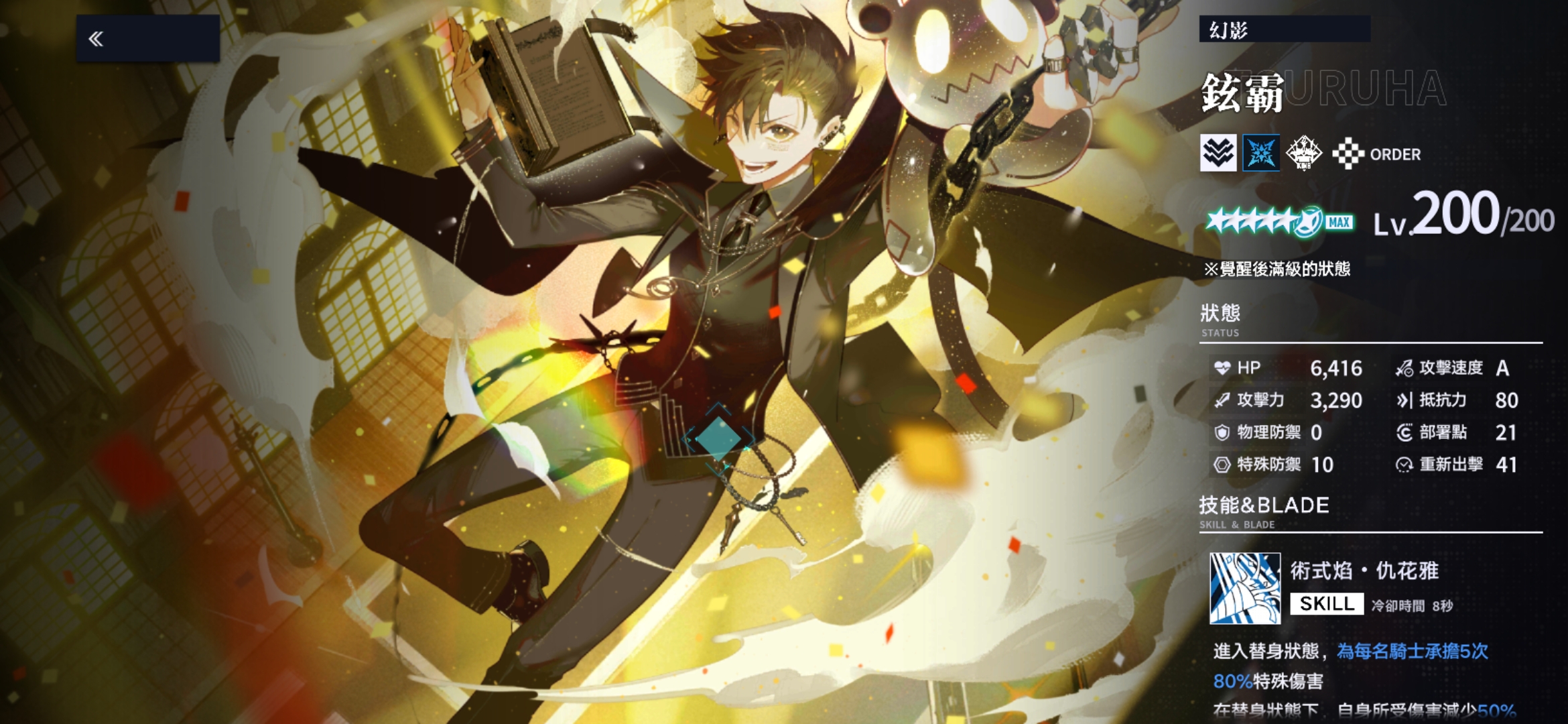 铉霸(幻影)的定位是替身防御型前锋。他的技能能进入替身状态,为全队分担多段伤害,同时大幅减少自身承伤。BLADE技能能将敌人拉拢到一起,并造成范围打击,兼具聚怪与反制效果。铉霸的优势在于防御与控制并存,既能保护队友,也能稳固战局,是前锋位上极为可靠的支柱。