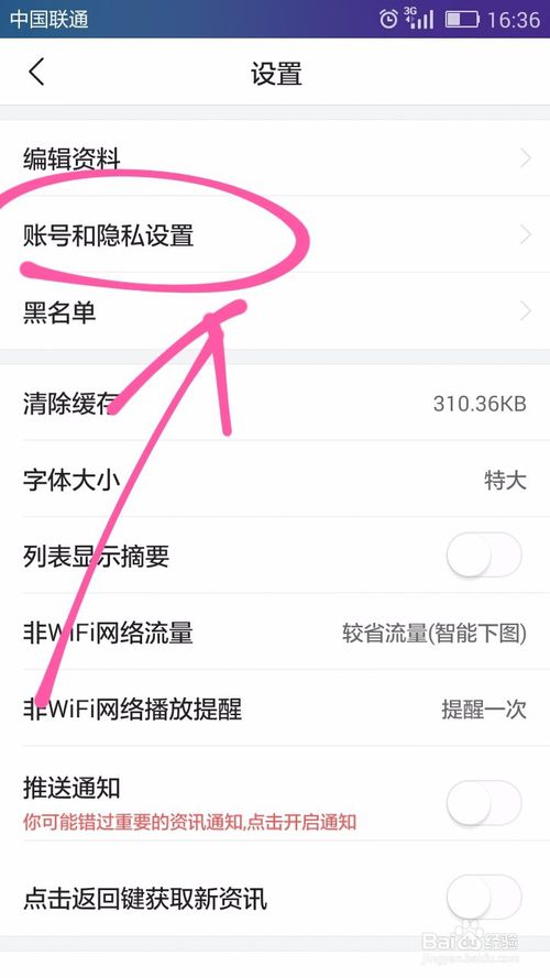 6.我们在这些设置选项中找到并选择账号和隐私设置;