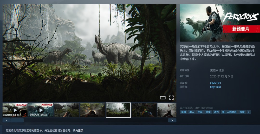 恐龙FPS《蛮荒计划》发售日宣传片 12月5日发售