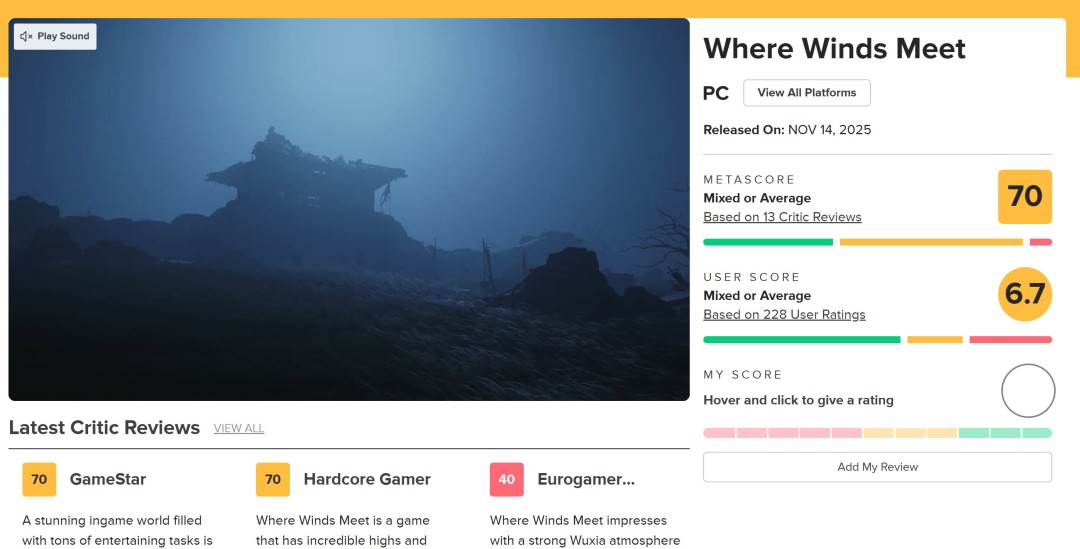 网友质疑IGN:《燕云十六声》评分竟不如《星鸣特攻》