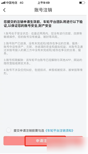 选中【提交申请注销前需勾选】,点击【申请注销】即可完成