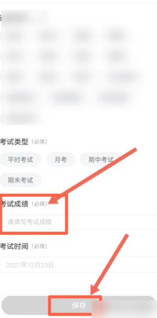 最后我们在页面中输入成绩内容信息,点击保存即可。如下图所示