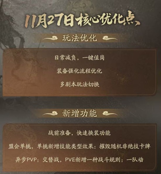 全新玩法:包括PVE肉鸽玩法:傲视群雄,PVP单挑联赛:金戈争鸣。实时战棋PVP和更多其他PVP模式也在开发中。