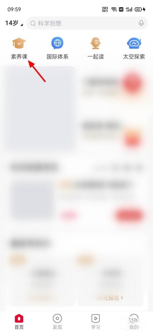 1.想要知道学而思网校如何报名,首先需要打开学而思app,然后在app课程首页点击课程,以“素质课”为例。