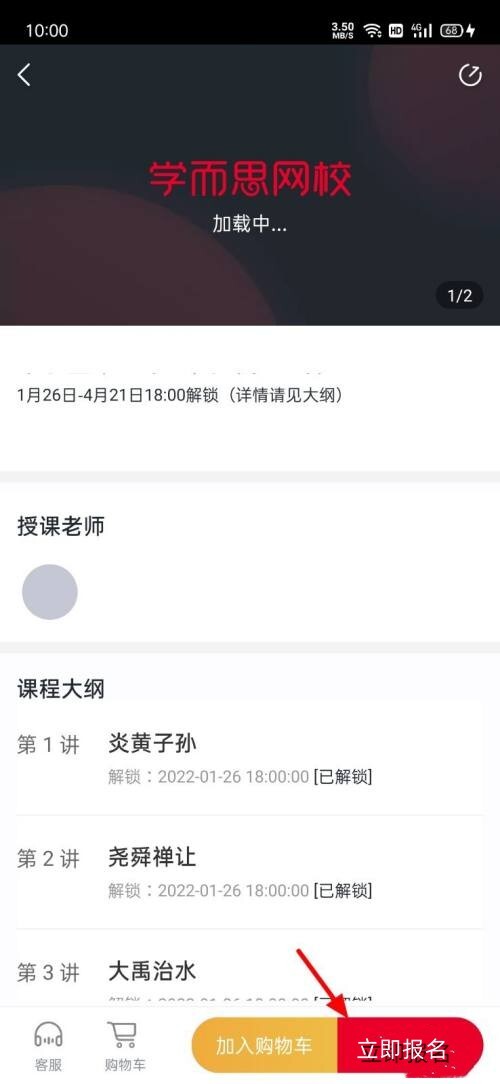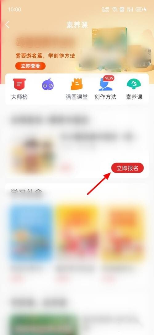 2.在素养课页面,找到要报名的课程,点击下方的“立刻报名”。