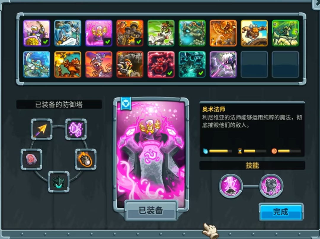 以其极高的性价比和战术灵活性紧随其后。这座造价300金币的魔法塔拥有游戏中最强的单体爆发能力,一技能可瞬间消灭高血量精英敌人,二技能则能为周围防御塔提供20%伤害加成,极大增强团队输出。奥术法师塔特别适合放置在关键路径的拐角处,既能最大化单体技能的利用率,又能辐射更多友军享受增益效果。测试表明,在配合三座基础箭塔的情况下,奥术法师塔的增益效果可使团队总输出提升约35%。其缺点是范围伤害能力较弱,需要搭配群攻型防御塔弥补这一不足。