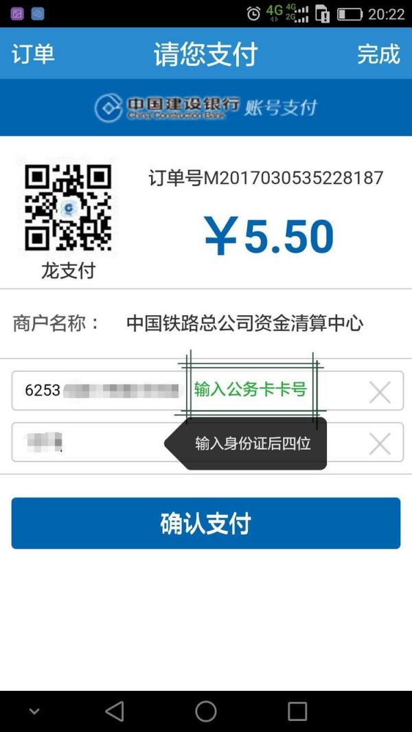 根据提示输入公务卡卡号,身份证后四位,点击确认支付