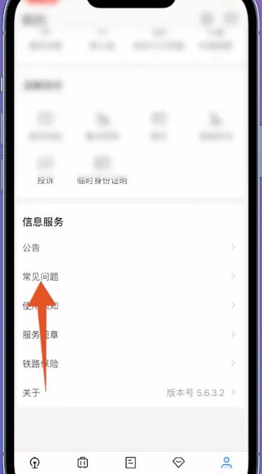 进入我的页面之后,在页面下方点击常见问题这个选项。