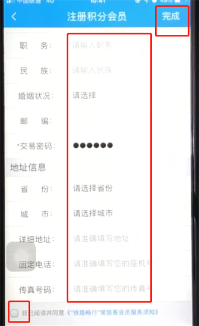 3,将注册会员信息填写好,然后勾选我已阅读并同意选项,点击完成即可