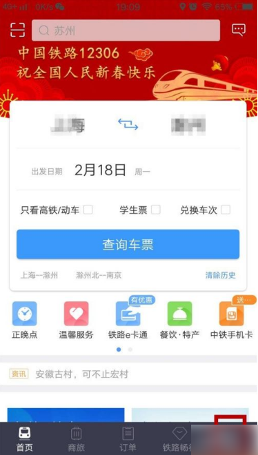 点开上图中的铁路12306客户端,进入到12306的首页,如下图。