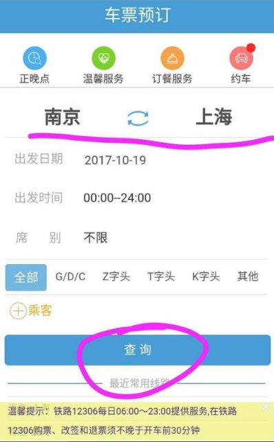 选择好自己的出发城市和目的地城市,选择好时间,然后查询到车次。