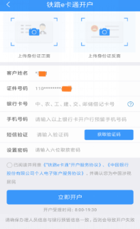 2. 点击任意功能按钮,将进入【铁路e卡通开户】页面。