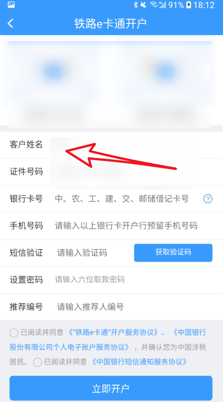 填好自身的名字,身份证号码,及其银行卡卡号,金融机构有6大金融机构