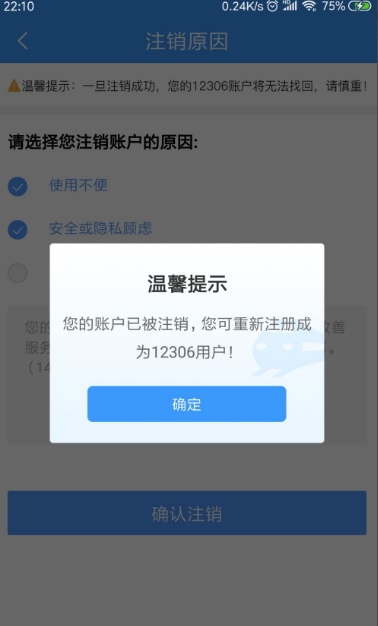 点击“注销账户”正试进入注销账户流程。