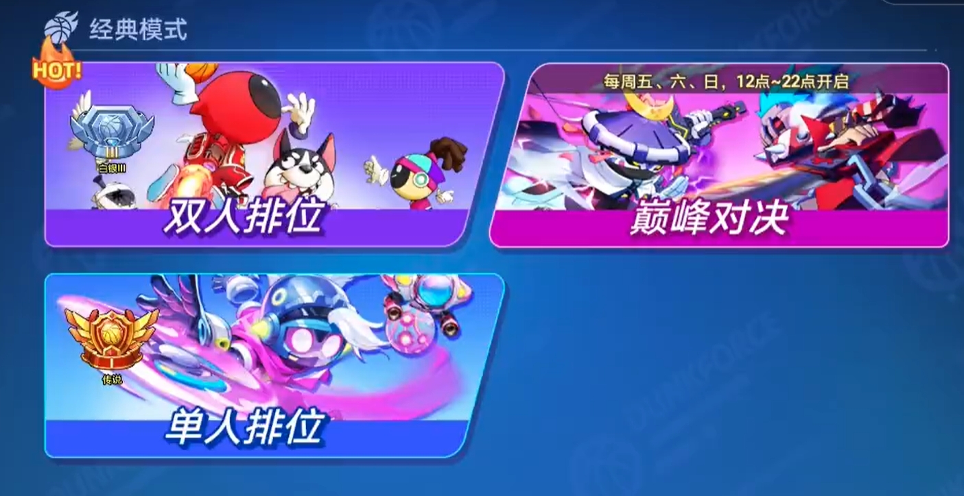 灌篮军团有着多种可玩模式供玩家去体验,除了常规的单排、多排等玩法外,还能在每周固定时间开启的巅峰对决中与各路高手竞技,更有丰富的冒险模式来让玩家去享受传统冒险格斗的快乐。同时,此作在操控方式也进行了很方便玩家们掌握的设计,不仅每个键位所覆盖的区域都很大,还进行了透明化处理,让玩家能轻松进行角色操控的同时,也能欣赏到角色在球场上与对手对决的英姿,不会让玩家错过任何一个精彩的瞬间。