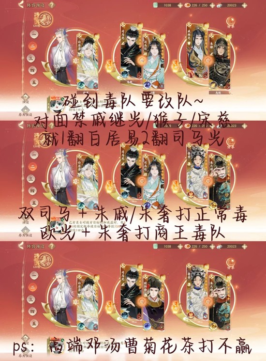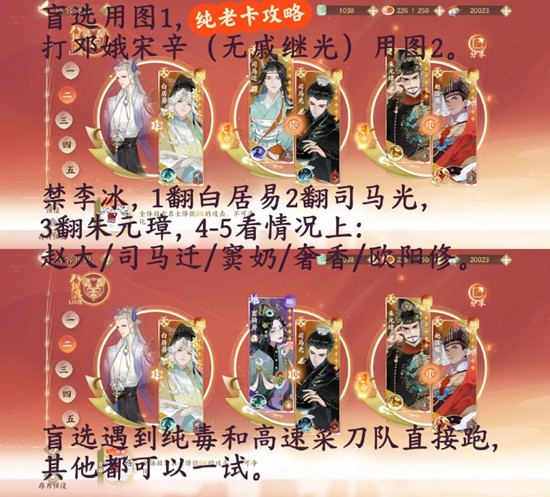 双司马朱赵主队:1翻白居易2翻司马光,看情况转成图4.5.6的队伍,一般情况是3翻司马迁/窦奶,45翻朱赵。