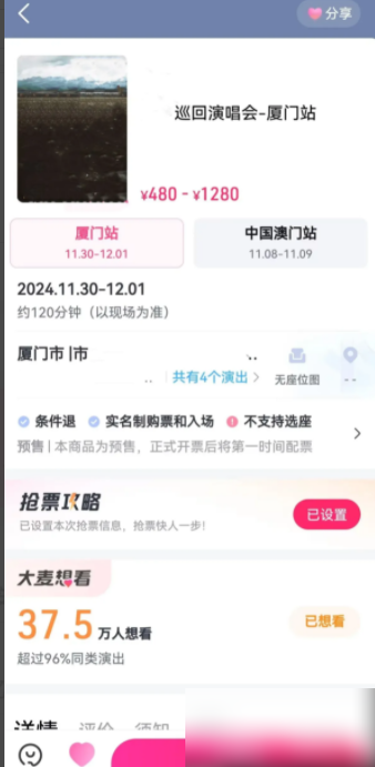 最后:上面是心愿游戏的小编为你带来的大麦网抢票怎么快速抢到演唱会门票,大麦预约抢票方法,更多相关的文章请关注本站。
