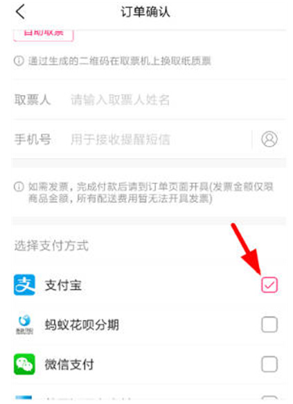 当我们绑定账号之后,然后我们在购买票下单的时候选择我们绑定的那个方式,点击提交订单。