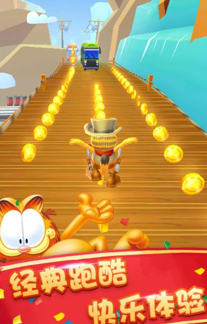 依托经典动漫形象打造,呈现出童趣十足的游戏世界。加菲猫造型生动可爱,动作诙谐有趣。赛道融入美食街区、梦境空间等卡通化场景,玩家在操控其奔跑的同时,还需避开障碍并收集食物类道具,激活趣味特效,增添互动乐趣。