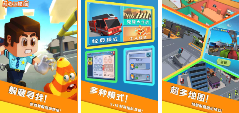 这是一款采用1V3对抗模式的非对称竞技类躲藏游戏,三位躲藏者需在限定场景中利用变身能力伪装成环境中的普通物品,而抓捕方则身穿趣味动物服饰展开搜捕。游戏支持多种地图切换,包括校园、庭院等主题空间,玩家可通过灵活走位与策略性伪装延长生存时间,整体节奏紧凑,互动性强,极具娱乐性。