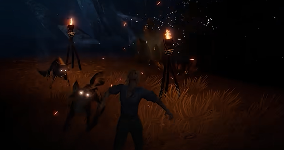 不过,如果你进入的是无光森林,那就更加危险了,因为这里的光线几乎为零。如果没有照明工具的话,会逐渐出现恐惧状态,恐惧条一旦蓄满,角色就会变得僵硬,甚至还会掉血,损失的生命值相当可观。要是没做足准备,真的很容易就被这些负面效果搞死。