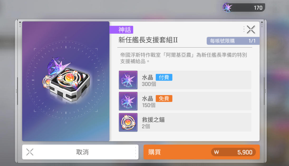 除月卡外,部分限时一次性礼包也具备较高投资价值。例如新手期开放的「新任舰长支援组 I 和 II」,价格亲民且资源实用性强,特别是II号套餐,提供300付费水晶,有效缓解初期资源紧张问题,助力平稳过渡关键发育期。