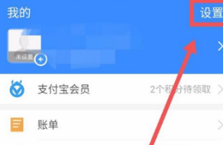 1、在支付宝页面点击“我的”-点击右上角“设置”